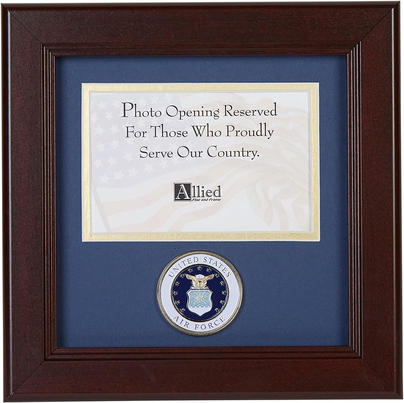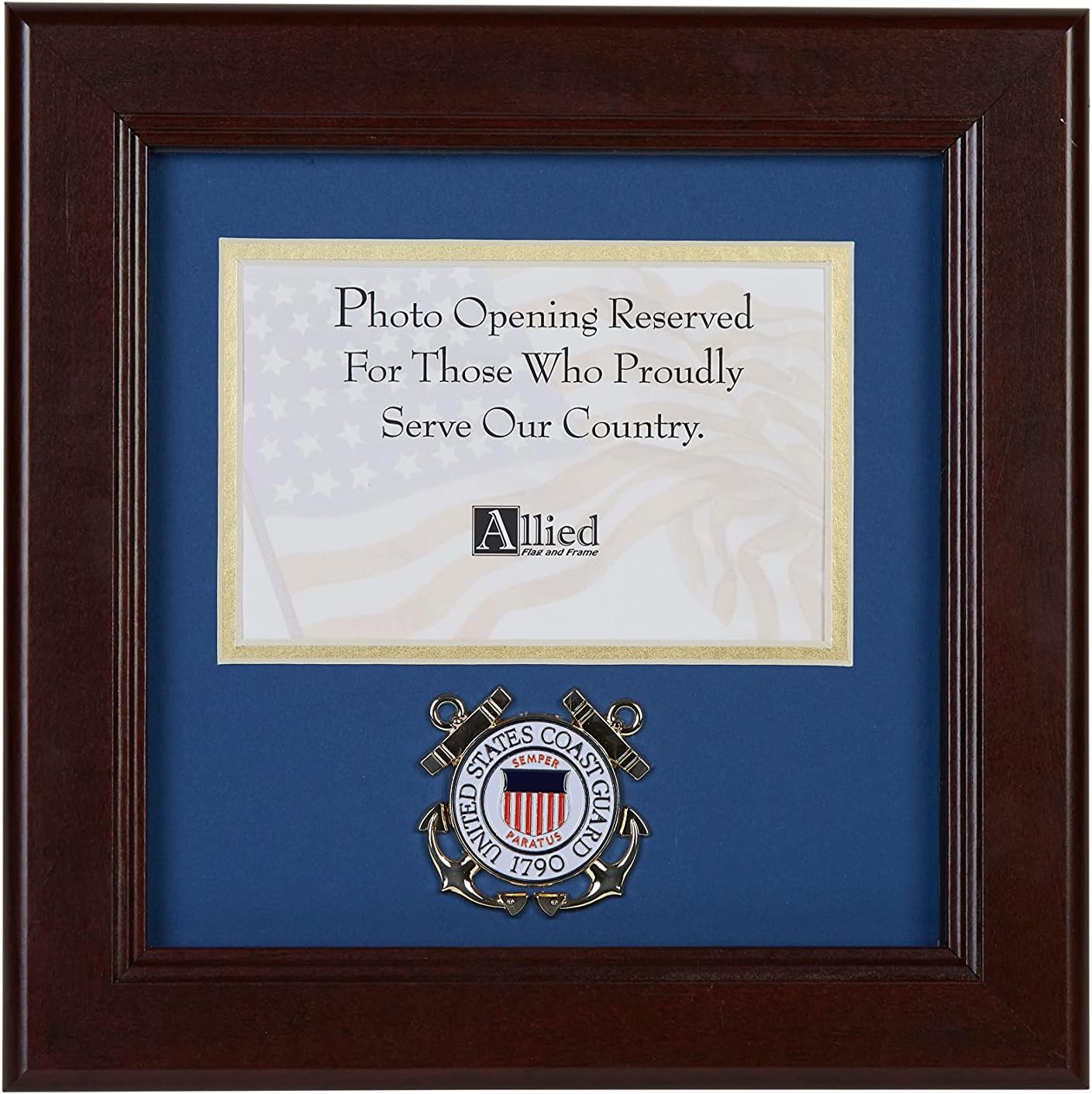Allied Frame's unique mahogany colored wooden frame exhibits a die-cast Firefighter medallion centered below a 4-Inch by 6-Inch photo opening. This gold trimmed photo opening is perfect for proudly displaying the portrait of a family member who is a firefighter, or once was a firefighter. The outside dimensions of the frame are 10-Inch by 10-Inch, and it comes complete with desktop easel and wall mounting hardware.