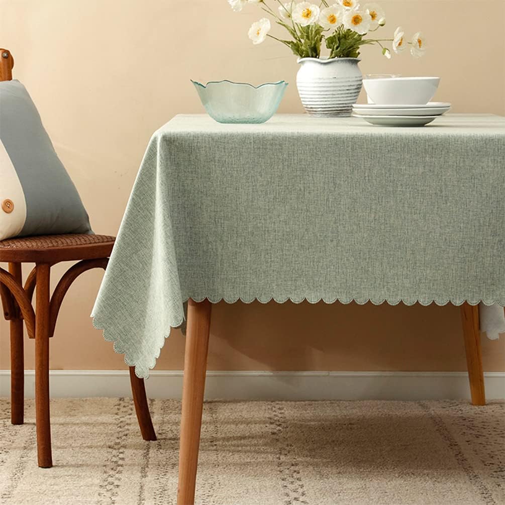Fennco Styles Woven Solid Color Scalloped Tablecloth: Create a versatile table setting with this Solid Scalloped Tablecloth. it features a solid color for easy coordination with a range of table decor, along with a pretty scalloped edge for a pop of style. This simple yet elegant tablecloth is suitable for everyday use or entertaining, made from durable polyester that helps protect your table from scratches, spills, or stains, and it can be machine washed for easy care. PRODUCT DETAILS :Dimensions: 56 x 80 inchesMaterial: polyester, linen Care Instructions: Machine washable, do not bleach Our Philosophy:At Fennco Styles you can shop a carefully selected range of home, lifestyle and gift products. We believe our homes should be reflections of the journeys we take. Our personal spaces deserve designs with a soul, a story, and a purpose. Our lifestyle brand offers inspired living through high-quality products, exclusive designs, and timeless style. We aim to source ethically, looking for products that are made from sustainable materials and designed to last and seeking out Makers that are conscious of their impact on the environment.