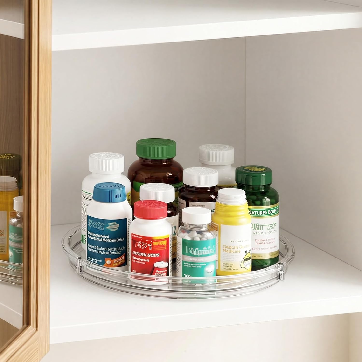 LAMU 2 Pack Lazy Susan Organizer, 9'' Clear Lazy Susan Turntable for Cabinet, Fridge, Kitchen, Pantry, Countertop, Table Top, Refrigerator Organizers and Storage, Seasoning and Spice Organizer