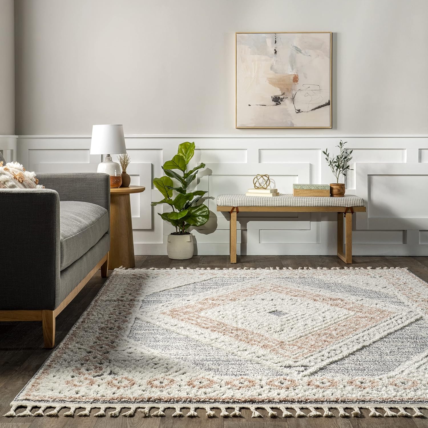 Transform your living space with the nuLOOM Acacia Raised Diamond Tasseled Area Rug, an ideal large rug for living rooms, bedrooms, and even nurseries! This versatile 8x10 area rug is perfect for adding a touch of modern elegance to any room. With its geometric, high-low design and tasseled edges, this rug will instantly elevate your home decor. It's large enough to cover a significant floor area, making it a perfect choice as a large rug for living rooms or a cozy bedroom rug. Power-loomed for increased durability, it is stain-resistant, making it an excellent choice for high-traffic areas. Its high pile provides a plush layer of comfort underfoot, while this rug's textured and dimensional design adds visual interest to your space. This 8x10 area rug is perfect for both small and large spaces, available in additional sizes 9x12 and 10x12 for living rooms, and smaller sizes for bedrooms or a nursery. This Geometric Tasseled Area Rug also makes a great living room carpet, offering a soft and comfortable spot for family gatherings. This rug's pastel hues offer a rich color can complement a variety of interior styles, from modern to rustic. As a bonus, this rug is kid and pet-friendly! This area rug is designed to be resilient and easy to care for, so you don't have to worry about spills or messes. It's a modern rug that combines style, comfort, and practicality in one beautiful package. The nuLOOM Acacia Raised Diamond Tasseled Area Rug is a versatile piece that can tie your decor together. Whether you are redecorating your living room or just want to add a touch of modern elegance to your bedroom, this rug is the perfect choice. It's a large rug, small rug, living room rug, bedroom rug - it's whatever you need it to be! The nuLOOM Acacia Raised Diamond Tasseled Area Rug is more than just a carpet for your living room or bedroom - it's a statement of taste and style. So why wait? Elevate your home decor with this beautiful, high-quality area rug today!