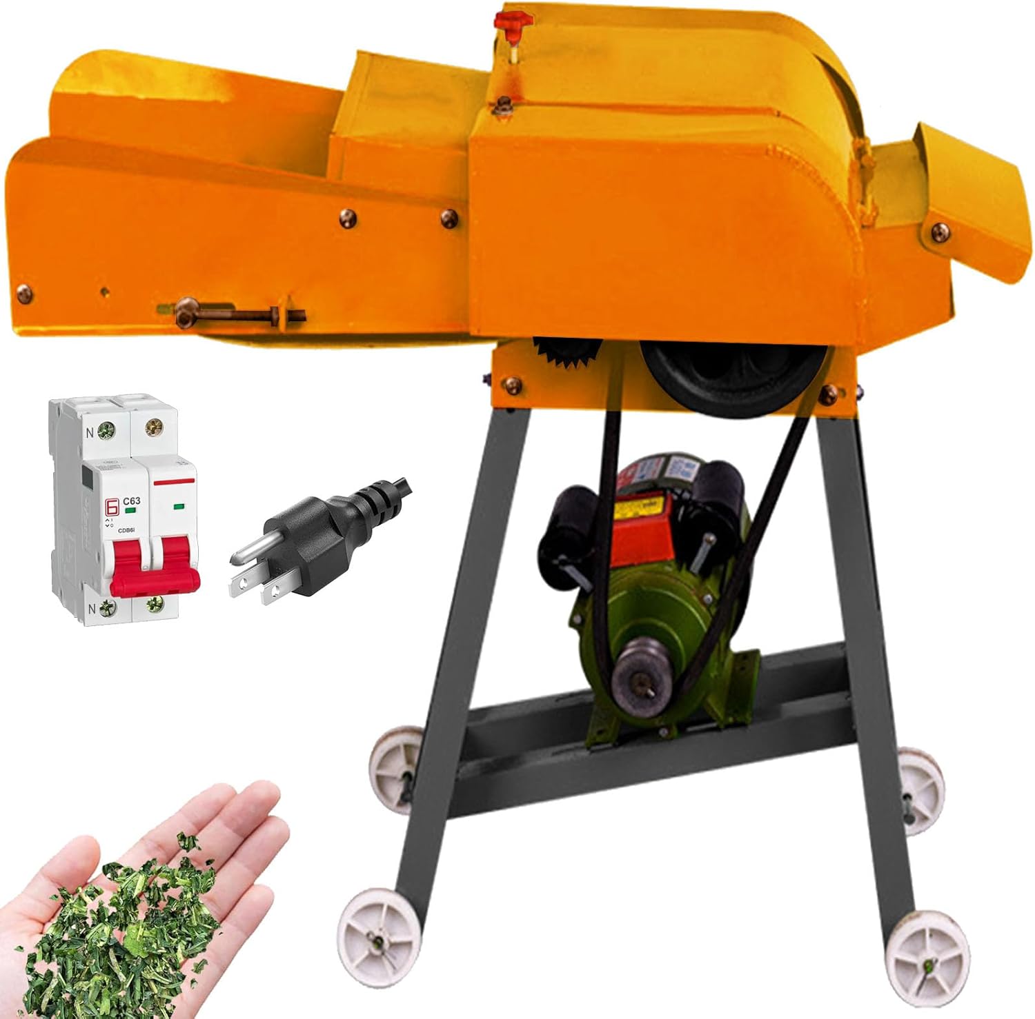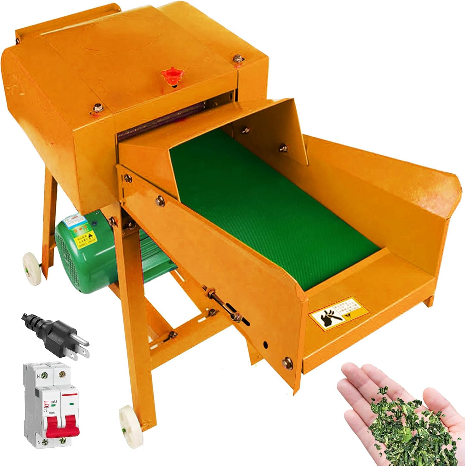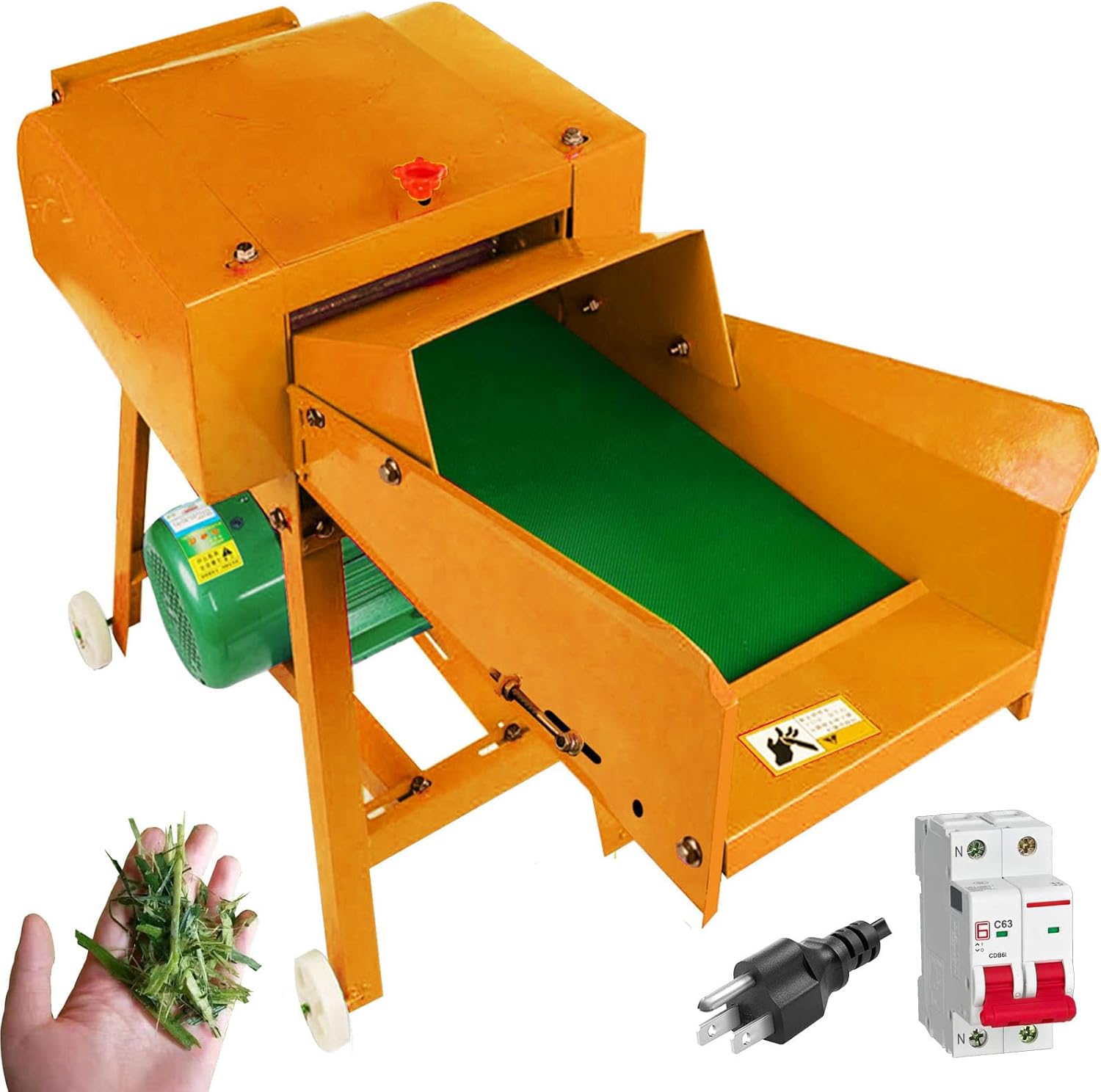 Feature:1.Product name: 4-blade conveyor belt haying cutter machine 2.Dry and wet dual use 3.Enlarge Feed port4.Maximum number of corn stalks fed at one time: 4-5 5.Applicable objects: straw, sweet potato vine, pasture, etc. Specification Product Name: grass Cutter color: red color,green color Voltage: 110V/60HZ,220V/50HZ Power: 3hp/2.2kw Motor speed: 2800 rpm Cavity width: 8.66inch/22cm Cutting length: 0.39inch-1.57inch/10MM-40 mm Whole machine weight: 110lb/50KG Cutting length: 0.39inch-1.57inch/10MM-40 mm Cutter machine’s dimension: 31.49inch*16.9inch*9.8inch/80cm*43cm*25cm Test object:cattle,sheep,pig,chicken,duck, rabbit Application: Fully automatic feeding straw cutter machine It can cut corn straw, king bamboo grass,sorghum stalk,yellow bamboo straw, sugarcane head, straw, soybean straw, sugar cane head,corn cob,wheat straw, peanut shells,grass,sweet potato vine,bean straw,green grass,corn,corn kernels,peanut seedling and other kinds of dry and wet forage, which is widely used. Various crop straws can be chopped to the different lengths. The processed materials are suitable for breeding cattle, sheep, deer, camel, horses, pigs, rabbits, fish and other livestock. It is an ideal equipment for large and small farms and domestic poultry The machine is a good helper for the farmers.