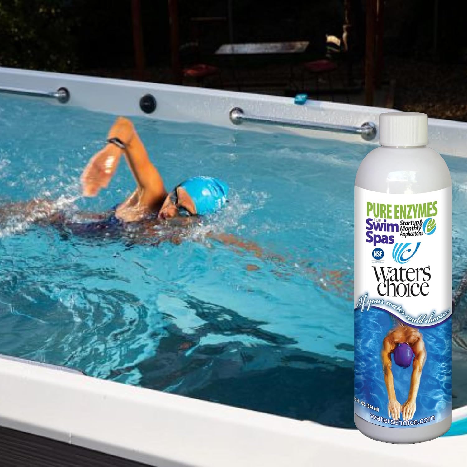 | Product Benefits | Choose Waters Choice and elevate your swim spa experience with cleaner, softer water that’s truly made for your unique space., Minimal Chemicals, Maximum Benefits: With Waters Choice, you only need a small amount of chlorine and no shock treatments. Enjoy a simplified routine and reduced chemical exposure while still keeping your spa water pristine., Soft, Clear, & Family-Friendly: Waters Choice enzymes keep your swim spa water irresistibly soft, sparkling clean, and gentle on skin, making it safe and enjoyable for everyone., Swim Spa-Specific Care: Unlike pools or hot tubs, swim spas require a specialized approach. Our proprietary enzyme formula is designed for the unique needs of swim spa water, so you get the best of both worlds with minimal effort. |