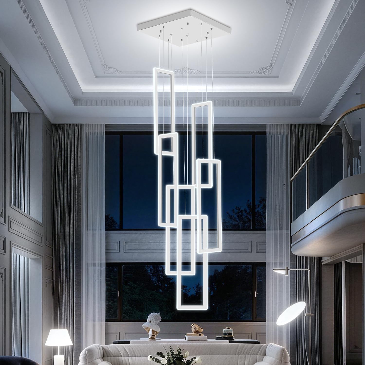 Gold 6 Rings Rectangle Pendant Lighting Dimmable Flush Mount Ceiling Chandeliers for Villa Foyer