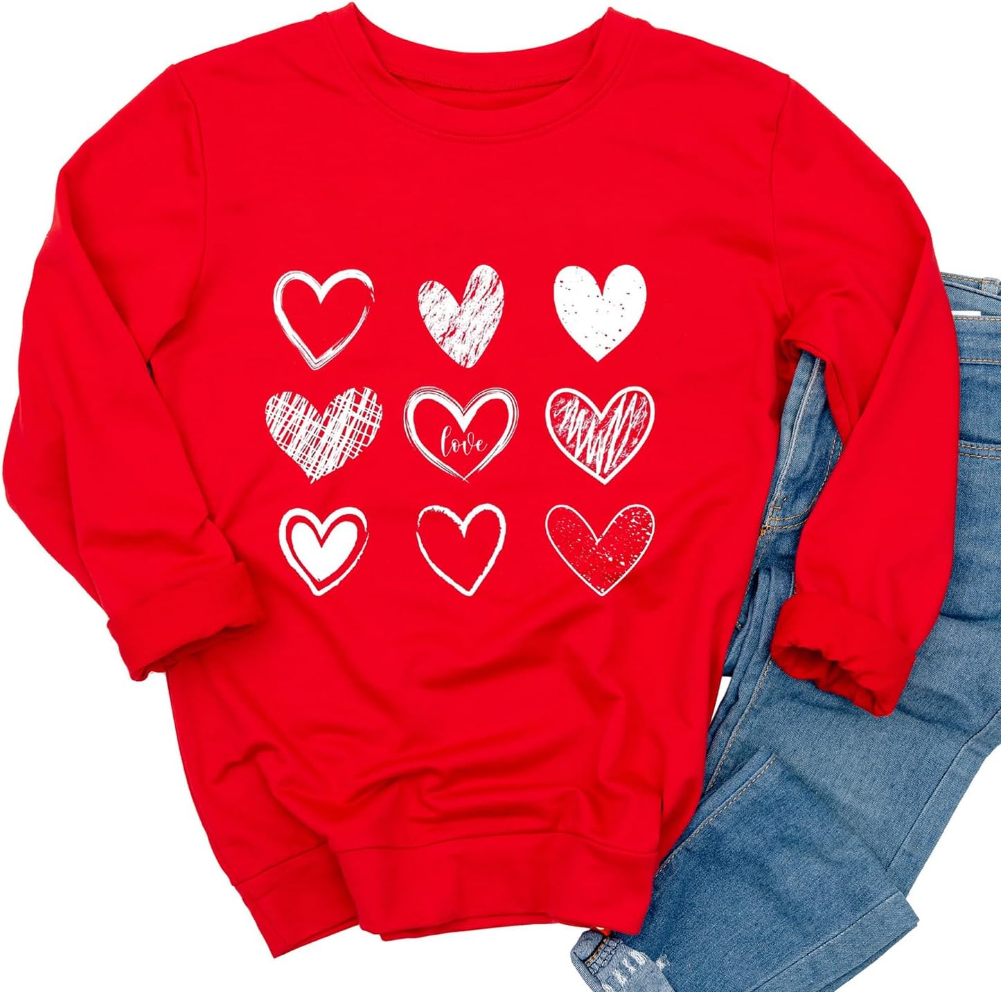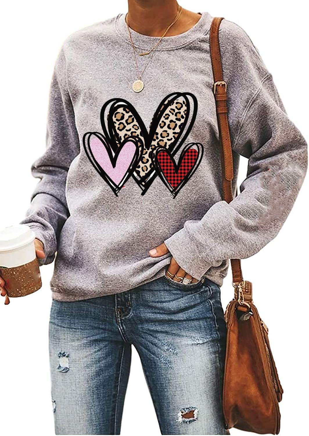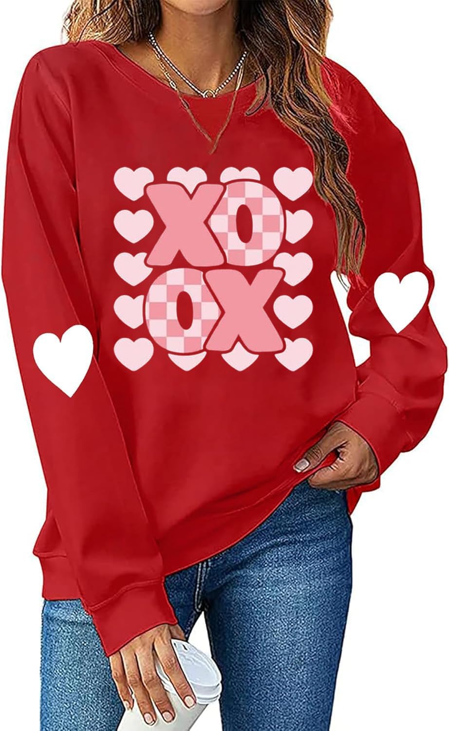 Ykomow Long Sleeve Valentines Shirts Women Plaid Love Heart Valentine's Sweatshirts Blouse Tops Valentines pullovers for women valentine sweater
